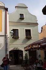 Telč-Vnitřní Město s arkýřem, jehož okénka mají,