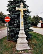 Kaplička Na severním okraji vsi Zvonička Nedaleko kříže Kamenný