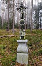 Zvonička Dřevěná, 2.pol.18.stol. Kamenný kříž Na západním okraji obce, 1921 Kamenný kříž Za č.p.5 Železný kříž Před zvoničkou, 1897 Železný kříž U cesty na Telč, 1855 Železný kříž V lese severně od vsi Dřevěný kříž Na stromě v lese severně od vsi Smírčí kámen U silnice na Telč Smírčí kámen U silnice na Telč, 1815
