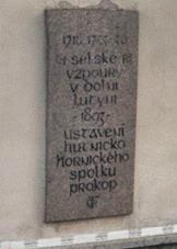 Boží muka Na křižovatce za Farským rybníkemul.Třanovského před č.p.1279 [Pamětní deska selských bouří a dělnického hnutí] 1718,1755-56 Selské vzpoury v Dolní Lutyni; 1893 ustavení