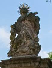 1898 Socha P.Marie Na fasádě fary Kamenný kříž U kostela Povýšení sv.Kříže,