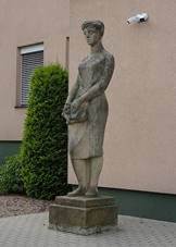 aleji (nyní Sportovní ulice). Na podstavci nápis: Josef Trojan tu Statuy