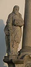 Před průčelím kostela, po 2008 doplněn sloup a sochy sv.Jáchyma