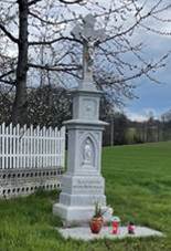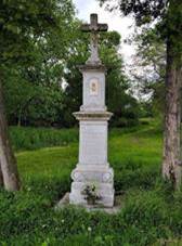 století. Autorem je Julius Pelikán z Olomouce. Kamenný kříž – Kalvárie 1858 s relefem sv. Veroniky, u kostela. Kamenný kříž 1910, u