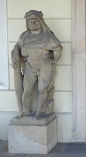 č.p.261/9 Socha Ondráše 1682 po stranách hlavního vchodu zámku Fryštát. Do demolice
