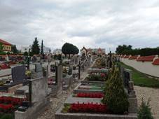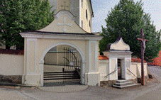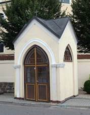 kříž před kostelem vedle kapličky u zadního vstupu Kamenný kříž Centrální na hřbitově