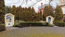 1721 evangelický dřevěný, současný 1743. Fara