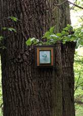 Dřevěný kříž U lesní cesty západně od vsi Svatý obrázek U lesní cesty západně od vsi na stromě Svatý obrázek U cesty k Hůrkám, severně od vsi