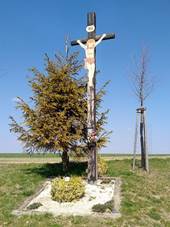 Dřevěný kříž U polní cesty severně od vsi |
