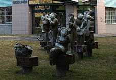 Plastiky Zdroj C) Před budovou ČSSZ