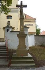 Nepomuckého Na západním okraji vsi Kamenný kříž Před kostelem, 1768 Kamenný kříž U mlýna Kamenný kříž U silnice na Dřevěný kříž JZ od kostela Erb Nad vchodem kostela Památník padlým Na návsi Jubilejní kámen Knížete Jana II.z