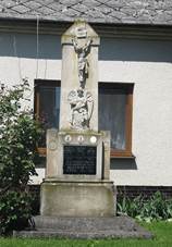 vsi Kamenný kříž Na rozcestí u silnice ke Strážnici Železný kříž Centrální na hřbitově Obraz sv.Floriána Ve výklenku na zvonici, na plechu,