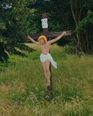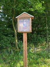 Hostýnem Dřevěný kříž U silnice na Rusavu Svatý obrázek Soška P. Marie ve skříňce u cesty