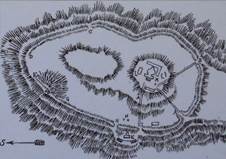 nepravidelného trojúhelníku o rozloze 19,8 ha po obvodu opevněno valem