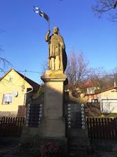 poblíž božích muk Památník padlým 1914-18 Se sochou sv. Václava Památník republiky S reliéfem T. G. Masaryka a
