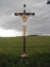 Kostel sv.Floriána 1932. Výklenková kaplička Jihovýchodně od vsi Hřbitov Na východním okraji vsi Socha P.Marie Hostýnské U kostela Socha sv.Floriána Na kostele Kamenný kříž Na návsi