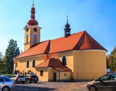 pozdně barokní sálová stavba z roku 1780, věž byla přistavěna v klasicistním