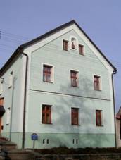 pseudoklasicistickou fasádu zdobenou pilastry a nad okny trojúhelníkovými