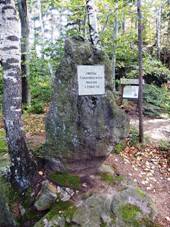 severnější, u Lesního domu. Zůstaly jen obdélné základy Obnovena, Ovčí paseka Socha