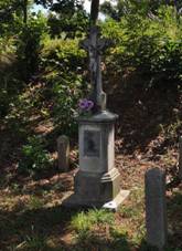 latinského kříže, gotizující nápis a rytina pistole. Stával u kraje lesa