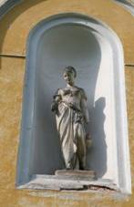 ho zdobí nika s antikizující sochou ženské postavy a na jižním nároží se
