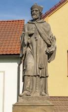 sochu. Světec je zobrazen v mírně strnulém postoji v kontrapostu