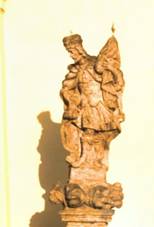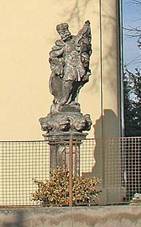 Nepomuckého na návsi Výklenková kaple u silnice do Kolína Zvonička … Hřbitov … Socha sv.Václava