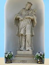 V nice je kamenná socha Jana Nepomuckého Kaple 1873 vystavěná manželi Křemečkovými Socha sv.Jana Nepomuckého Ve výklenku zvonice 1761 Kamenný kříž 1807 Kamenný kříž před školou byl vysvěcen 21.