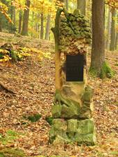 1945. Pomník Dominika Hudce v lese severně od Čeložnic. Text: