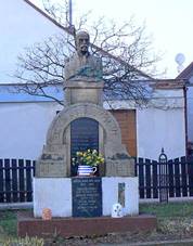Pomník padlým odhalen 1930. busta T.G.Masaryka byla 1939 zakopána a po válce spolu s