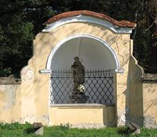 Ondřeje Schweigla a Josefa Leonarda Webera. Socha sv. Jana Nepomuckého Na pilíři hřbitovní zdi u kostela, od