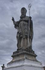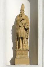 Socha sv. Libora Na pilíři hřbitovní zdi u kostela, od