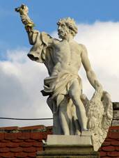 byla speciálně impregnována, aby byla podobná originálu. Socha Héry Na průčelí zámku, Původní originál