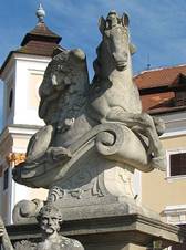 proto byla speciálně impregnována, aby byla podobná originálu. Socha U mostu před zámkem Socha U mostu před zámkem Socha U mostu před zámkem