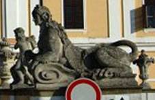 proto byla speciálně impregnována, aby byla podobná originálu. Socha Dia Na průčelí zámku, Původní originál
