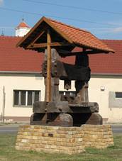 Dřevěný kříž U silnice na Kelčany se sochami sv.Jana Nepomuckého a P.Marie Památník padlých … Lis na víno … Pamětní deska Generálu Sergeji Ingrovi