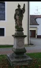 východním konci vsi Kamenný kříž U kapličky, 1917 na paměť padlých vojáků Železný kříž Ul.Kolárova Dřevěný kříž Před kostelem Pamětní deska padlým 1938-45 Na budově radnice Památník rudoarmějce … Erb Nad vchodem fary Radnice 1948-50, arch.Jiří Jeřábek, Smuteční síň … Habánské vinné sklepy … |