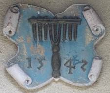 Znak Kostků z Postupic Z r.1542. Pod stříškou verandy kostela Památník padlým … [Tvrz] Starší, na tzv. Plchově kopci,1513 pustá