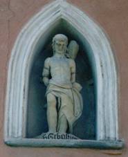 Socha sv.Šebestiána Na bráně hřbitova, zcizena 2002
