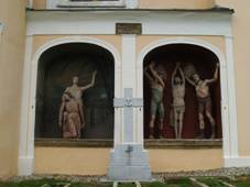 okna restaurována 2013 Sousoší Bičování Krista a Kristus na hoře Olivetské Dva malované výklenky