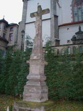 sv.Jana Nepomuckého Dům č.p. 139, prázdný výklenek Kamenný kříž Mezi rameny schodiště na Šantově
