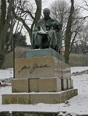 Socha sv.Jana Nepomuckého Na Jiráskově náměstí, pův.uprostřed rybníčku, Josef Max, 1827