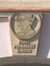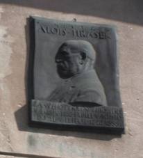 Busta Prokše v zahradě bývalého Prokšova chudobince Pamětní deska Bratří