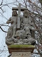 Socha Nejsv. Trojice U hřbitovní zdi a márnice