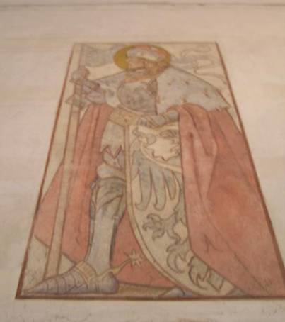 vítěze nesoucího. Obraz sv. Václava na stěně nad