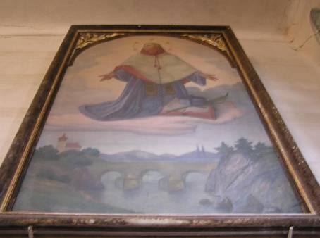 Nepomuckého olejem na plátně k výzdobě bočního oltáře. Na provedení