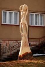 Socha anděla Dřevěná, před OÚ, vyřezaná z pokáceného smrku