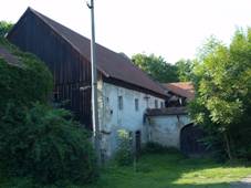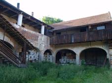k Osíku, pila funkční, trojkřídlý zdí uzavřený dvůr, klenuté náspí,