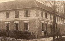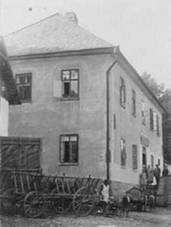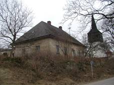 historizující budova vedle fary, 1885 Obecní škola-pekárna Patrová s valbovou střechou,