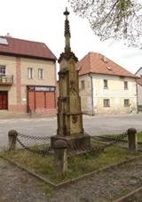 proti č.p.323, novodobý Železný kříž Mladoboleslavská ul. Boží muka Neogotický sloup na Tyršově náměstí